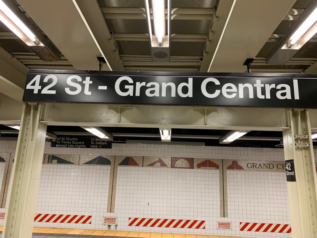 グランドセントラル駅からタイムズスクエア駅のシャトルトレインと書かれています。