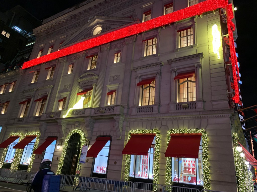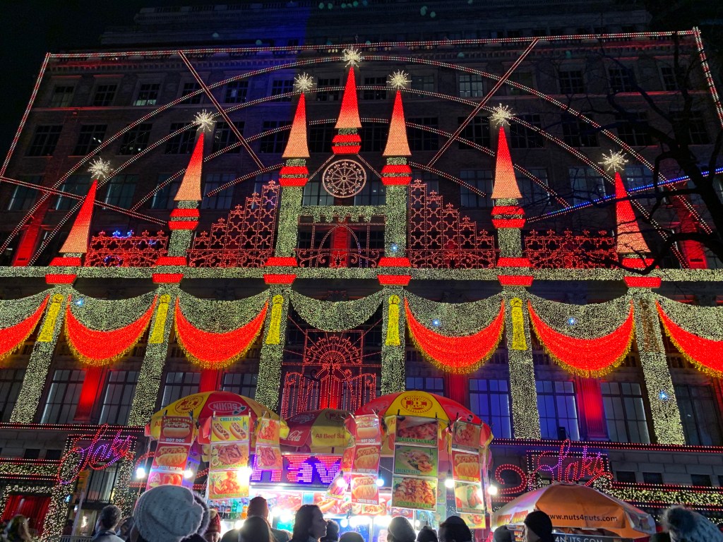 この百貨店のライトアップも赤い大きなリボン🎀でとてもキレイです