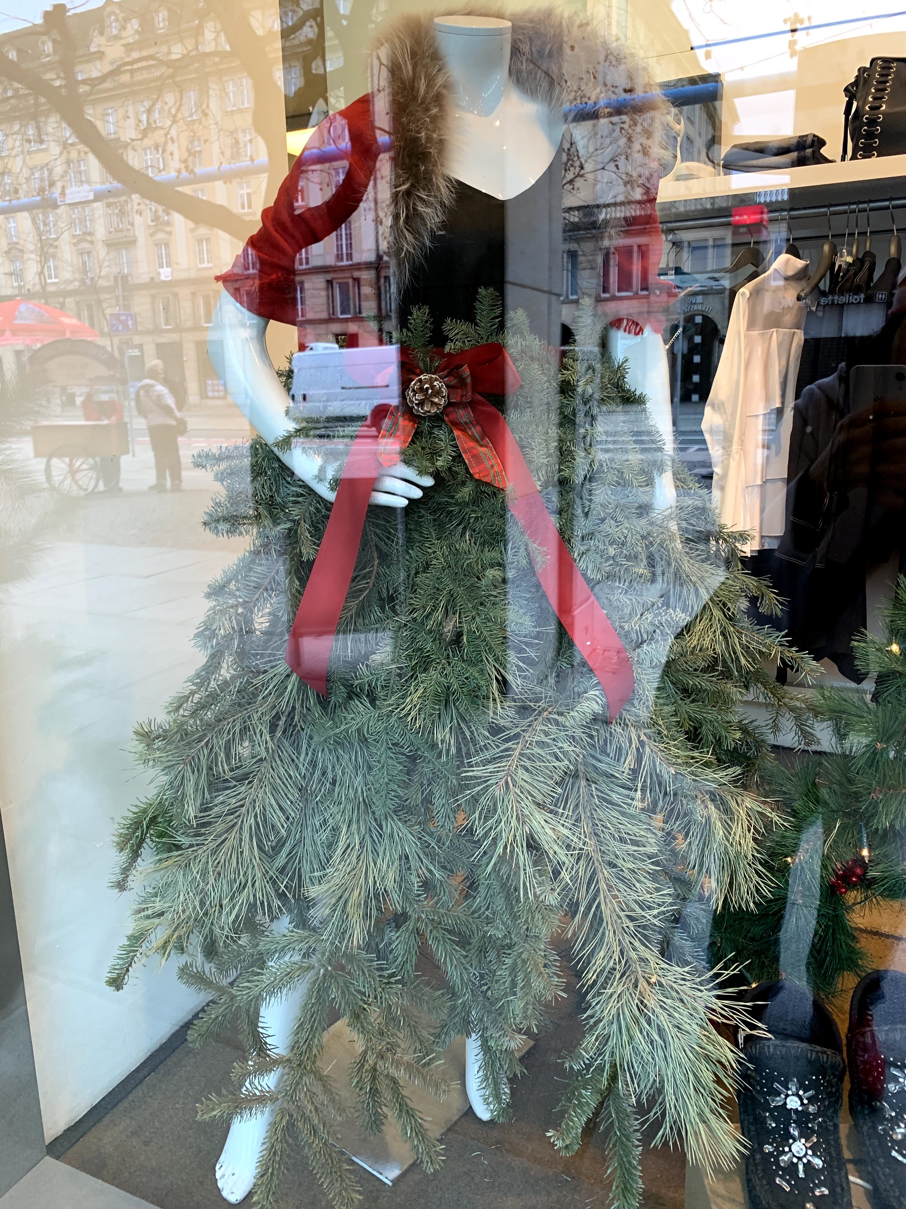 マネキンのスカートがツリーになっています🎄