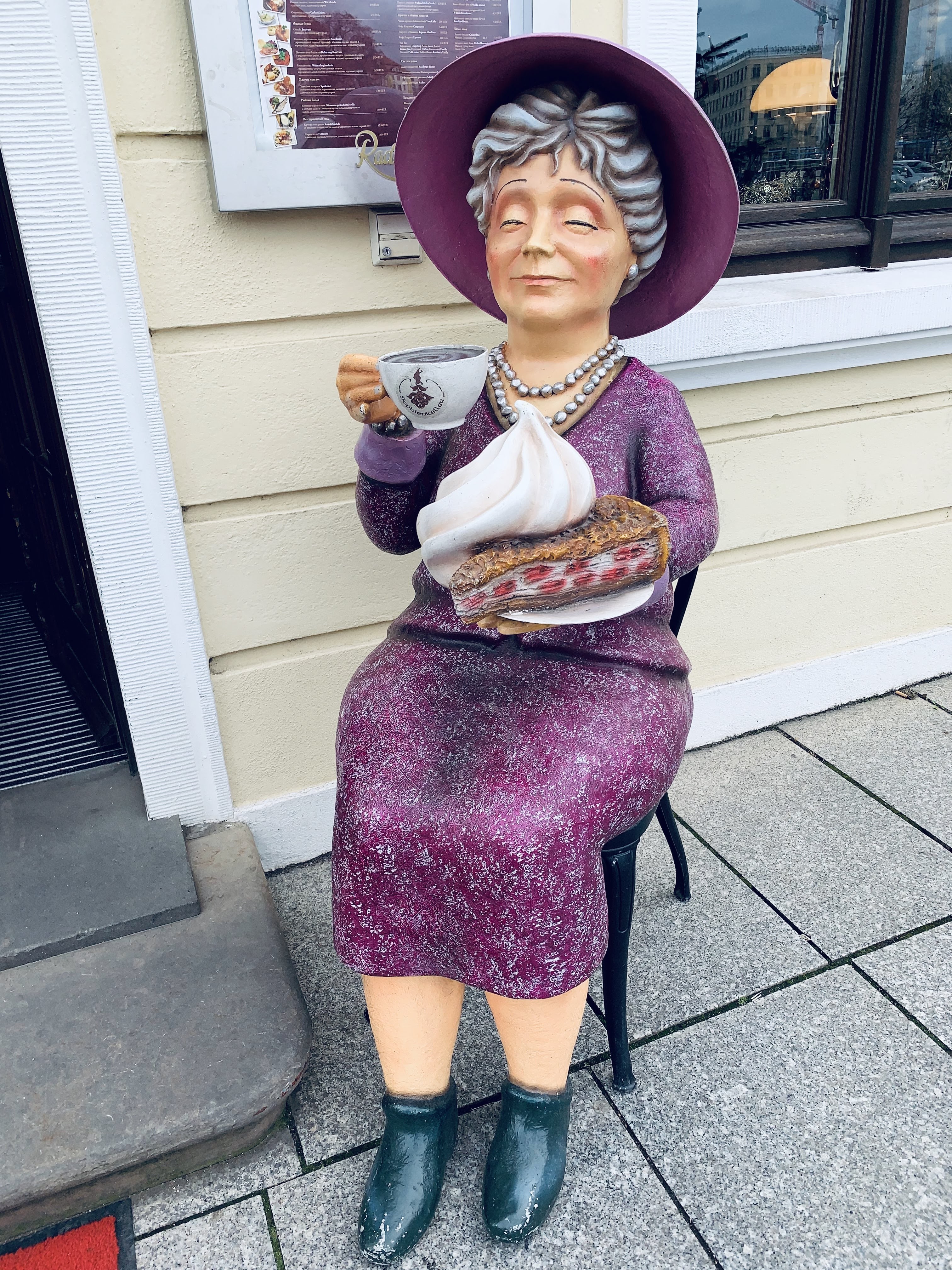 コーヒー☕️とケーキ🍰を持つご婦人の置物👗